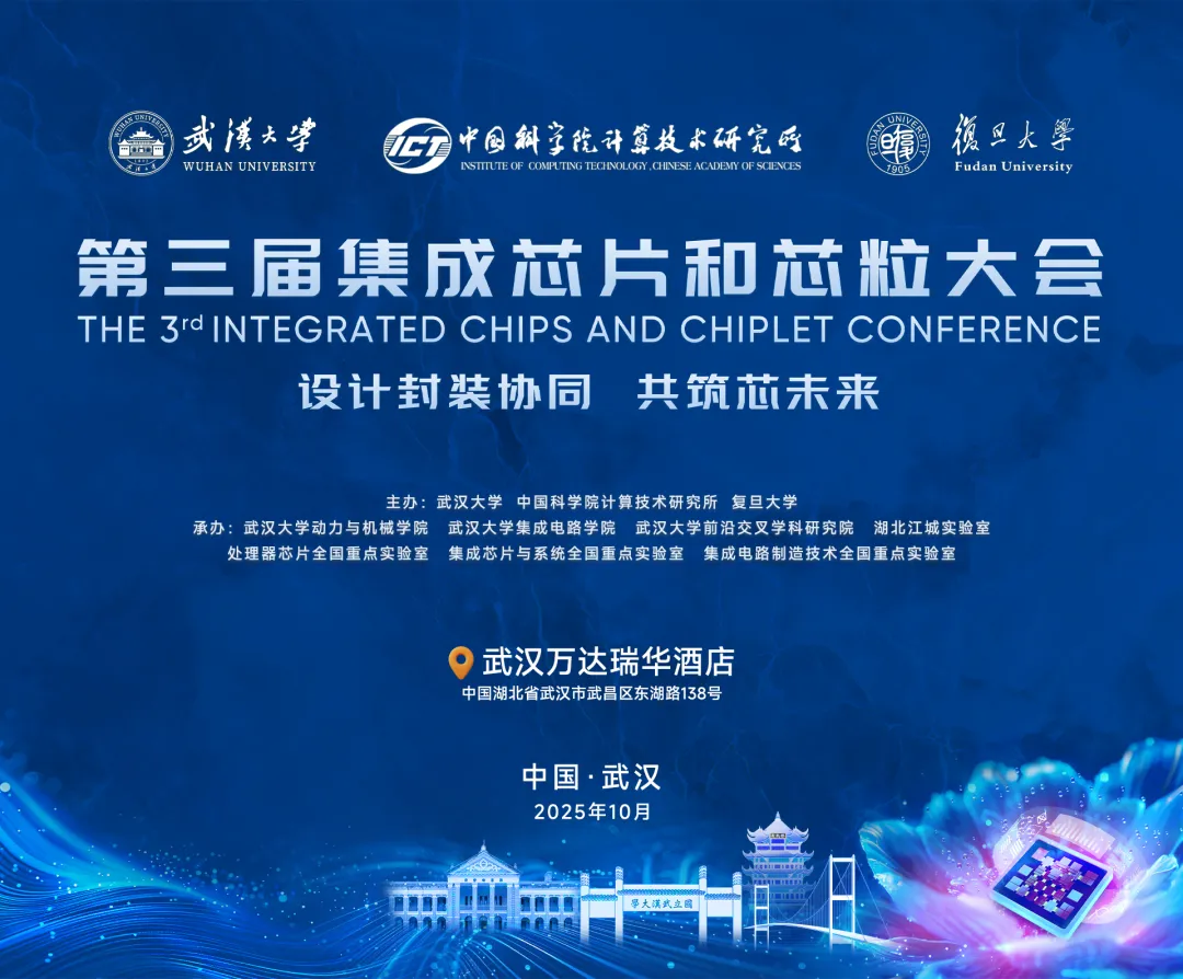 第三届集成芯片和芯粒大会由武汉大学、中国科学院计算技术研究所、复旦大学主办,将于2025年10月10日(周五)至10月13日(周一)在武汉召开。